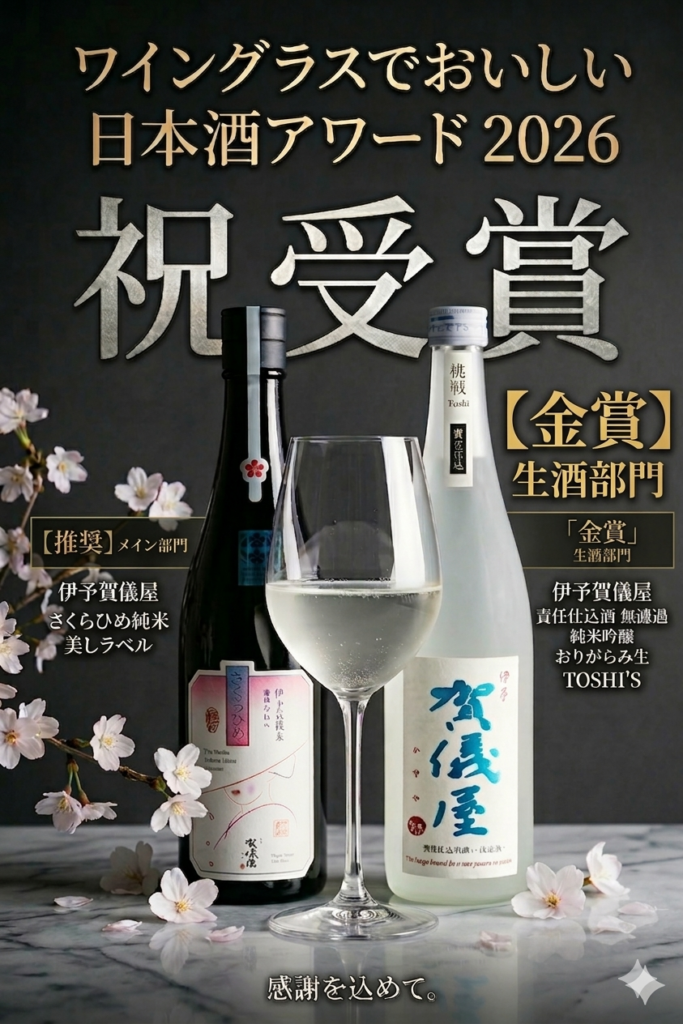 先日3/11発表、「ワイングラスでおいしい日本酒アワード2026」におきまして、成龍酒造のお酒が名誉ある賞を頂く事ができました。