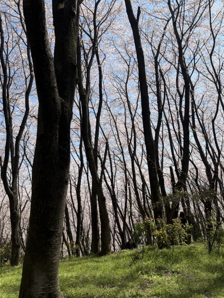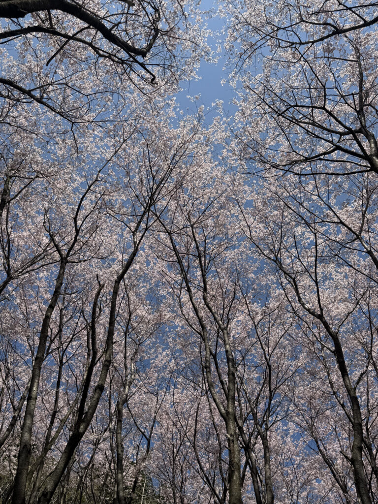 頂上に登ると、360°桜に囲まれ、まるで別世界に来たかのように思わず錯覚してしまいます。風に舞い散る桜の花びら。小鳥のさえずり。その全てに癒される森。この桜の森に来ると、新しい1年が始まったと、毎年全身で感じられます。
