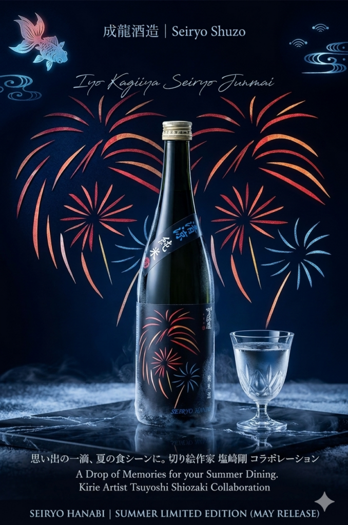 切り絵シリーズの醸造を任されるようになってはや数年が経過しました。年々酒質の改善を行いながらその季節や皆様の食シーンに合わせたお酒となるよう、日々努力しています。この花火を発売するにあたって、今年は酵母をチェンジしました。今愛媛県でもっとも新しいさくらひめ酵母のType-1を使用。甘美ないちごのような香りが特徴的で、香りもよく、優しくすっきり飲める酒質を目指しました。今回のテーマは「日本の夏に寄り添えるHANABI(日本酒)」です。この花火は夏の暑い日を少しでも涼しく感じて頂けるようにお酒のシャープさを意識して仕上げました。涼しさの仲にも情熱を感じて頂けるように香りはもちろん、最後の喉越しまでお米の旨味を多く感じて頂けるような味わいです。飲み口爽やかに口の奥まで運んでいき、最後に打ち上げ花火のごとく大きな旨味がパッと開いて静かに消えていく、そんな夏の心地いい余韻をお楽しみ頂けますと幸いです。冷やしてキリっと楽しまれても良し、常温で旨味を感じながら夕涼みを楽しんで頂くのも良し、様々な夏のワンシーンで思い思いにお楽しみ下さい。相性のいいお料理は赤身のお肉で、あえて塩やワサビ、また塩味の効いたソースでお食べ頂くと、お互い引き立て合い素晴らしいペアリングとなると思います。このHANABIでこれから暑い季節、皆様の心に「笑顔の花火」がたくさん打ちあがる事を願っています。